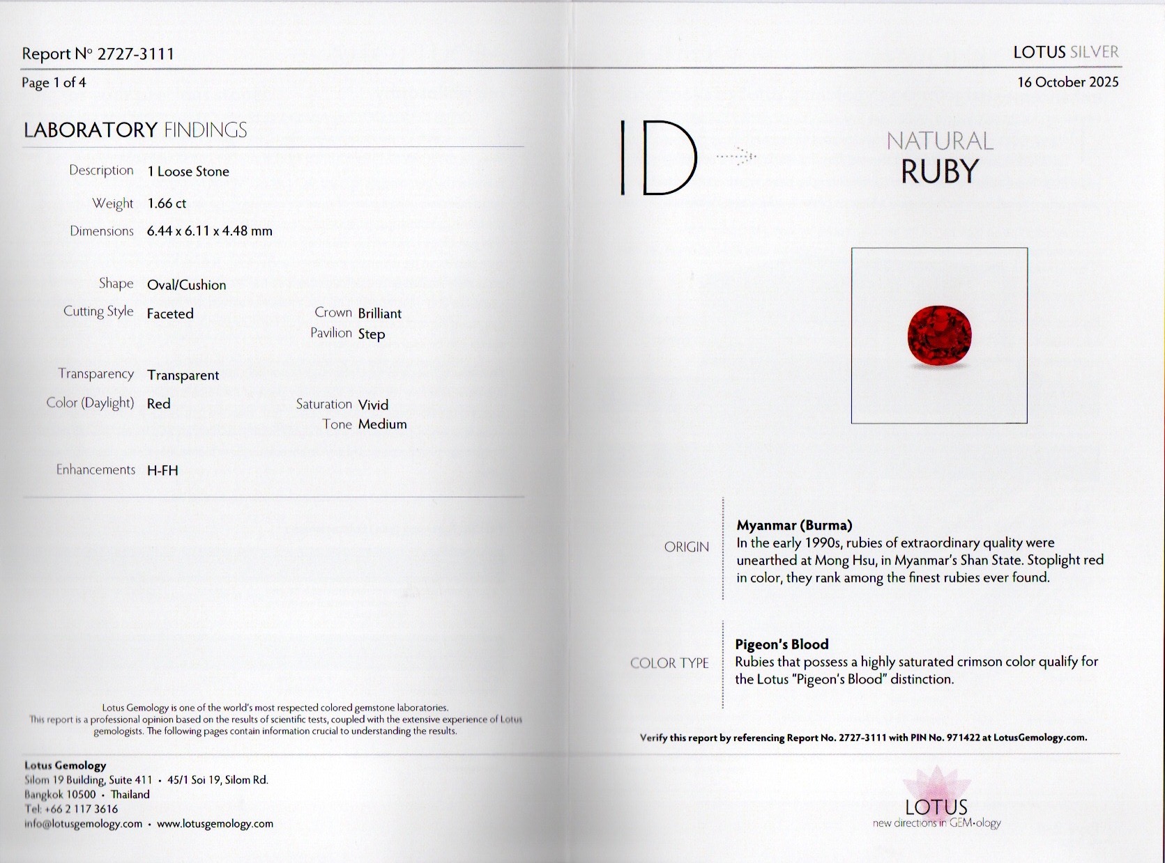 A 1.66CT Burmese Oval Cut Ruby with Pure Pigeon Blood Red Color$19,920.00 GEM TYPE Ruby WEIGHT (CT) 1.66 COLOR Pigeon Blood SHAPE Cushion TREATMENT Indications Of Heating CLARITY NA SIZE MM 6.44 x 6.11 x 4.48 ORIGIN Burma 1 in stock A 1.66CT Burmese Oval Cut Ruby with Pure Pigeon Blood Red Color quantity Buy now SKU: RS46 Category: Ruby Product ID: 187253 Description Description Certification Lotus #27273111 Related products View Details Add to Cart 4.04CT Electrifying Pinkish Red Oval Ruby $64,640.00 Buy now View Details Add to Cart 0.65 CT Red Cushion Brilliant Ruby $585.00 Buy now View Details Add to Cart A 1.21CT Burmese Emerald Cut Ruby with Bright Red Color $13,310.00 Buy now